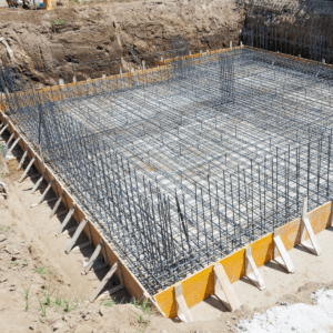 ✅ Aço para armação – Barras de aço são essenciais para reforçar a fundação, aumentando sua capacidade de carga e flexibilidade.
